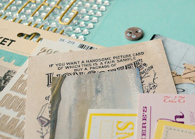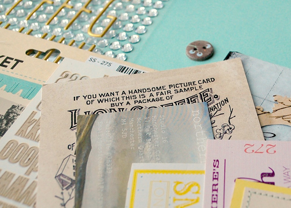 To build on the 'shabby-chic' theme, and to emulate some of the items found in the Embellishment Add On, I raided my own stash of embellishments including an eclectic selection of ephemera; notecards; stickers; die-cuts; frames; doilies; buttons; bling; lace; ribbon and vellums.