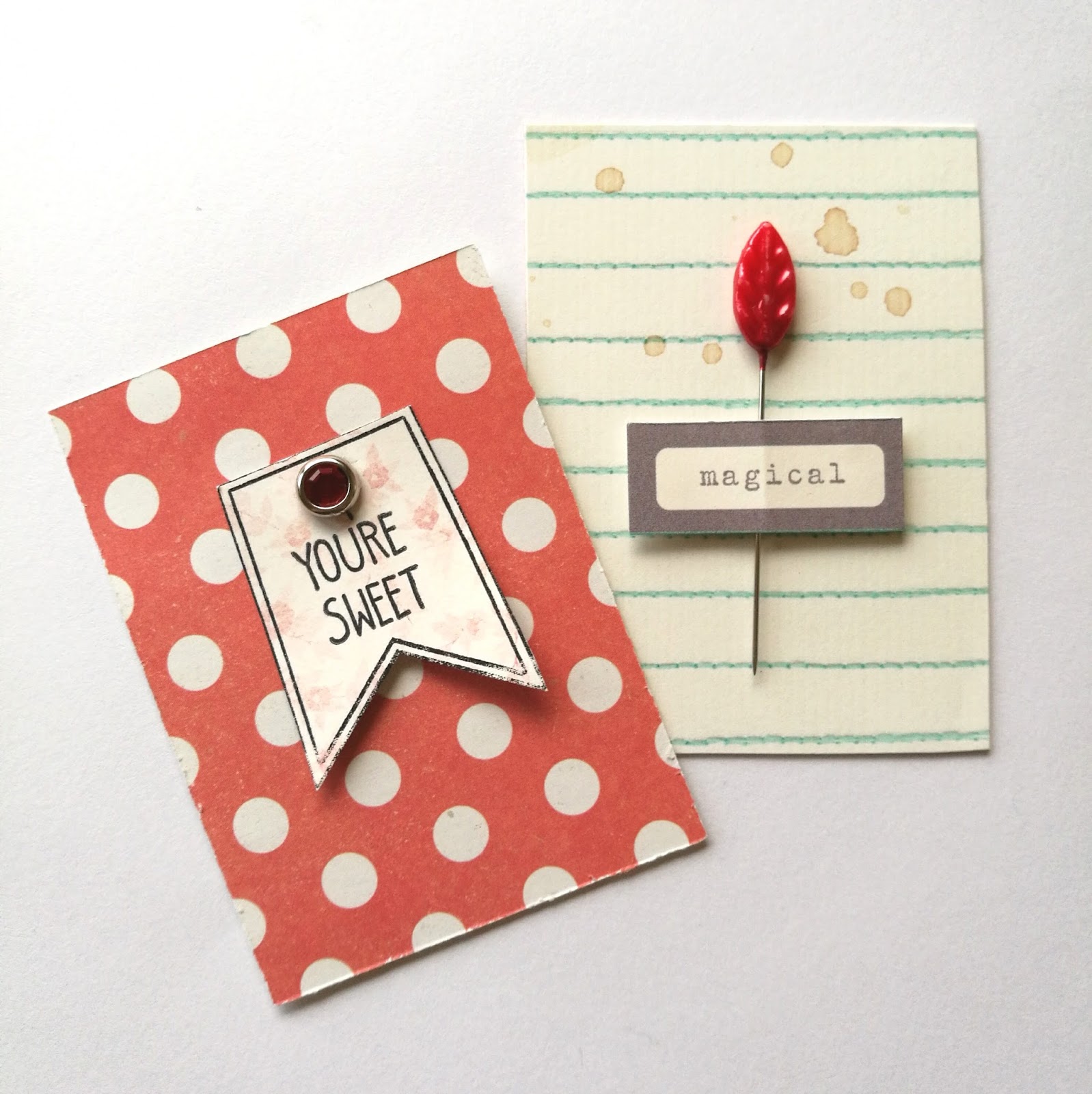 Luckily, I also found (whilst looking for something else, obviously!) these lovely little vellum circles, which were included in one of my Elle's Studio Monthly Kits. They echo the vellum circles included in the Lost River Kit and were the best little addition to my Pocket Letter. To finish it all off, I added some little sentiments to a few of the cards and, voila, all done!